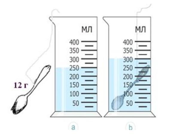 а) определите объем жидкости в мл b) определите объем ложки в мл с) определите объем ложки см^3
