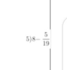 8 переводишь в дробь 8/1 и домножаешь до знаминателя 19. получается 152/19. потом вычитаешь 152-5 а знаминатели без изменений. потом переводишь в смешанную дробь. будет 7|14/19