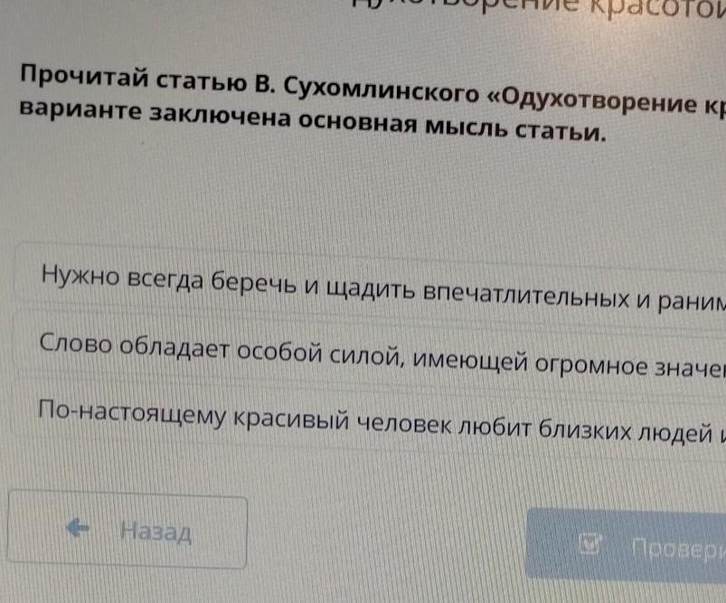 Прочитай статью В. Сухомлинского «Одухотворение красотой человеческого духа». Определи, в кан