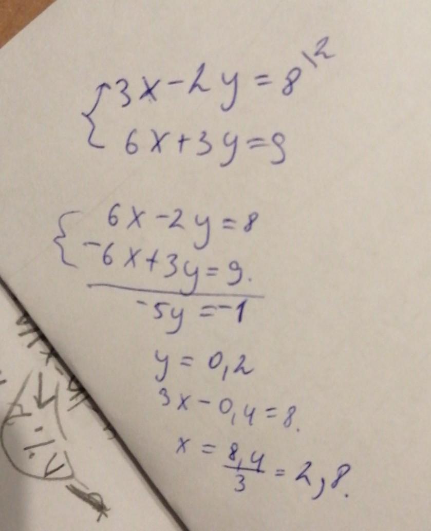 3x-2y=8 ,6x+3y=9