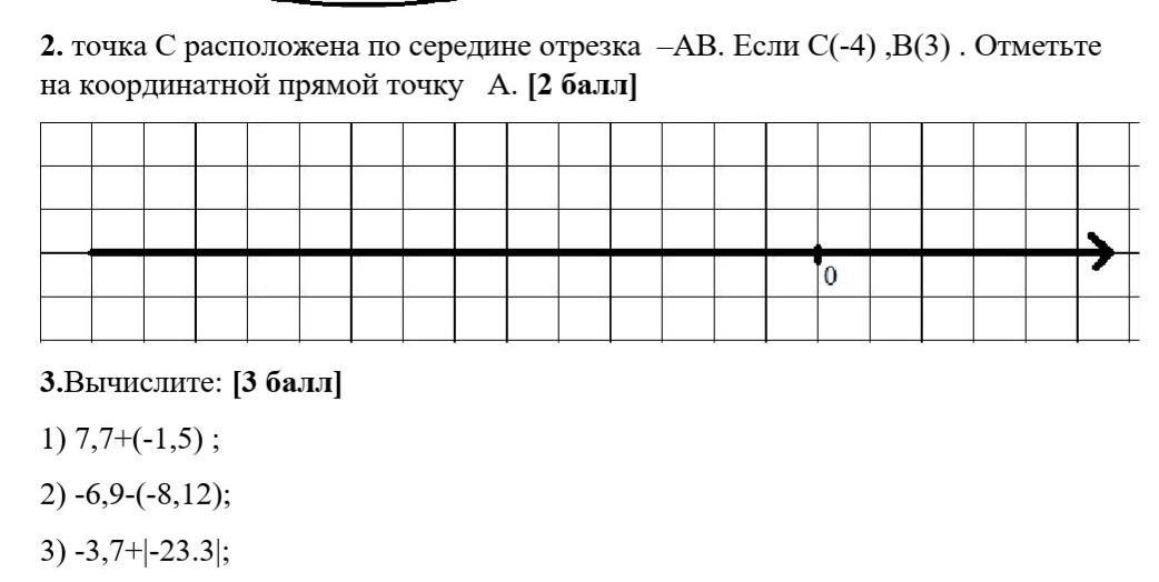 точка С Расположена по середине отрезка-АВ.Если С(-4),В(3).Отметьте на координатной прямой точку