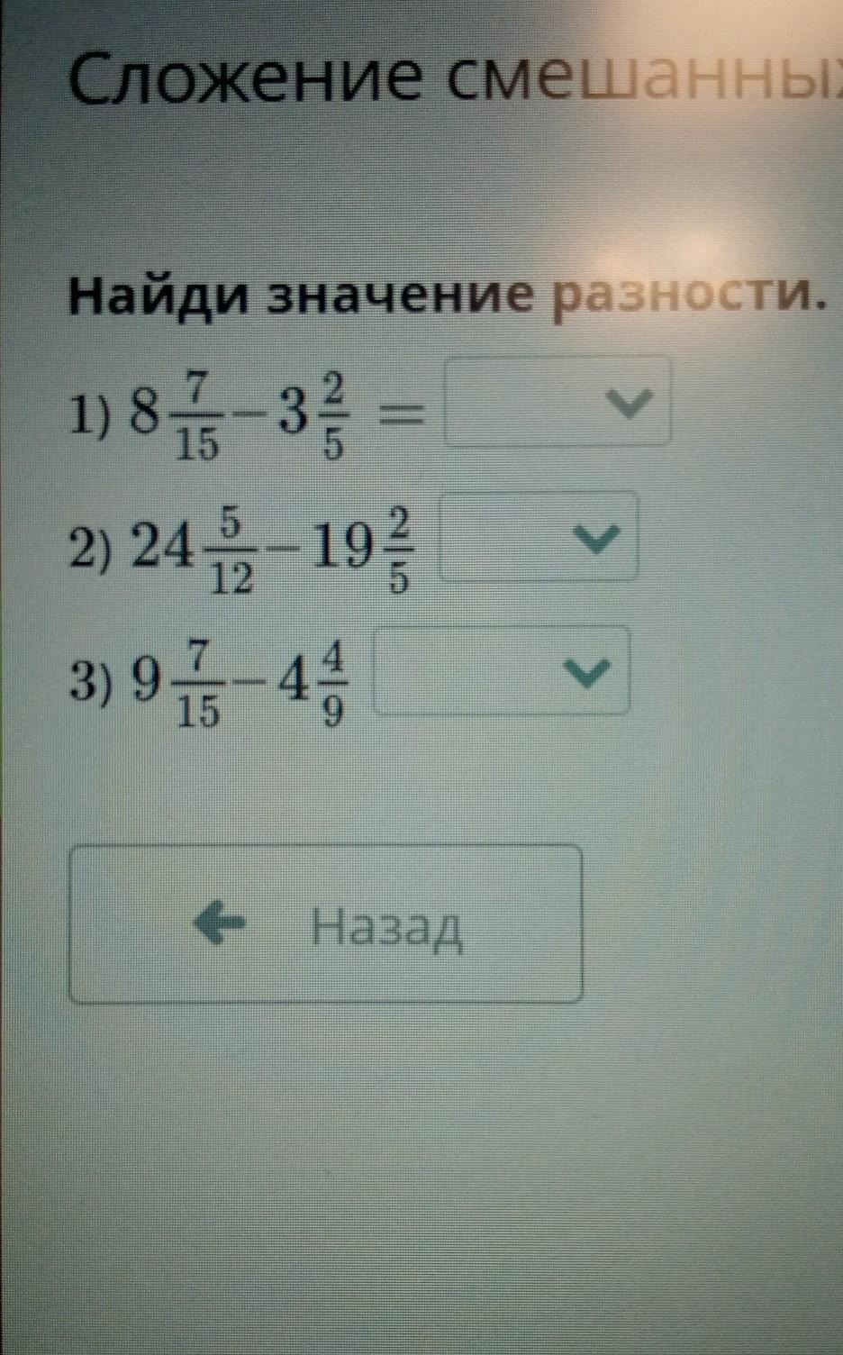 3) 5 1/15 ; 5 5/15 ; 5 1/60 ; 5 3/60 ; 5 1/45