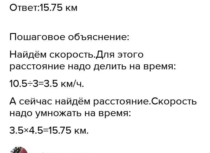 6 класс номер 540 помогите пожалуйста. пешеход за 3 часа прошёл 10.5 км . какой путь он пройдёт за 4.5 ч двигаясь с той же скоростью?