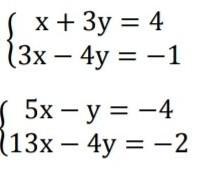 \left \{ {{5x-y=-4} \atop {13x-4y=-2}} \right. \Leftrightarrow \left \{ {{y=5x+4} \atop {13x-4y=-2}} \right. \Leftrightarrow \left \{ {{y=5x+4} \atop {13x-4(5x+4)=-2}} \right. \Leftrightarrow \left \{ {{y=5x+4} \atop {13x-20x-16=-2}} \right. \Leftrightarrow