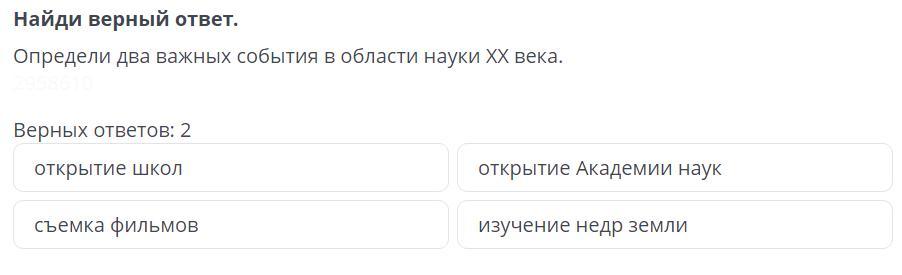 Определи два важных события в области науки ХХ века Верных ответов: 2 открытие школ открытие Академии наук изучение недр земли съемка фильмов