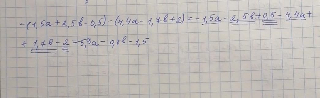 – (1,5a + 2,5b – 0,5) – (4,4a – 1,7b + 2).