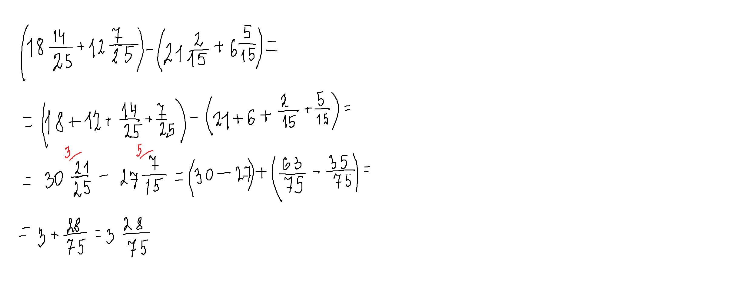3) 30 21/25 - 27 7/15 = (30 - 27) + (21/25 - 7/15) =3+(21/25 · 3/3 - 7/15 · 5/5)=