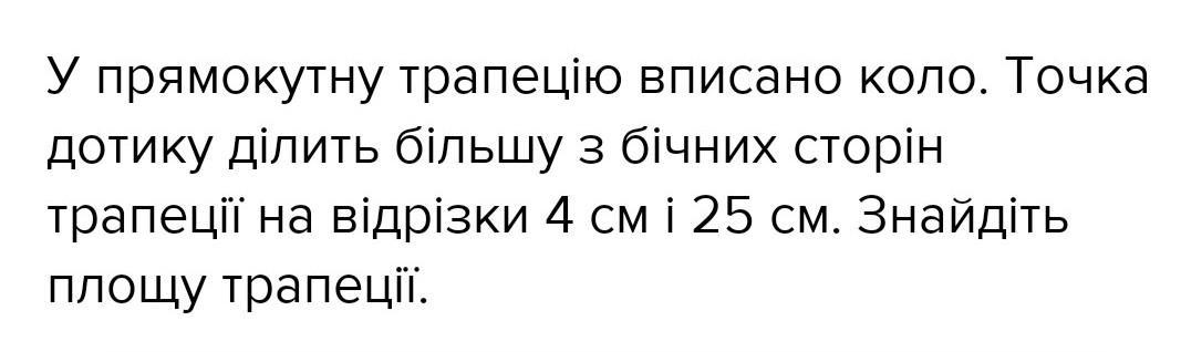 СРОЧНО Коло, вписане в прямокутну трапецію, поділяє точкою дотику бічну сторону на