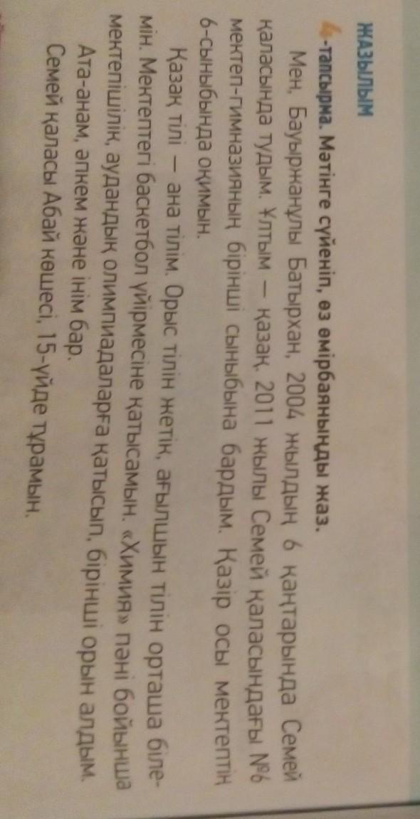 мәтінге сүйеніп өз өмірбаяныңды жаз