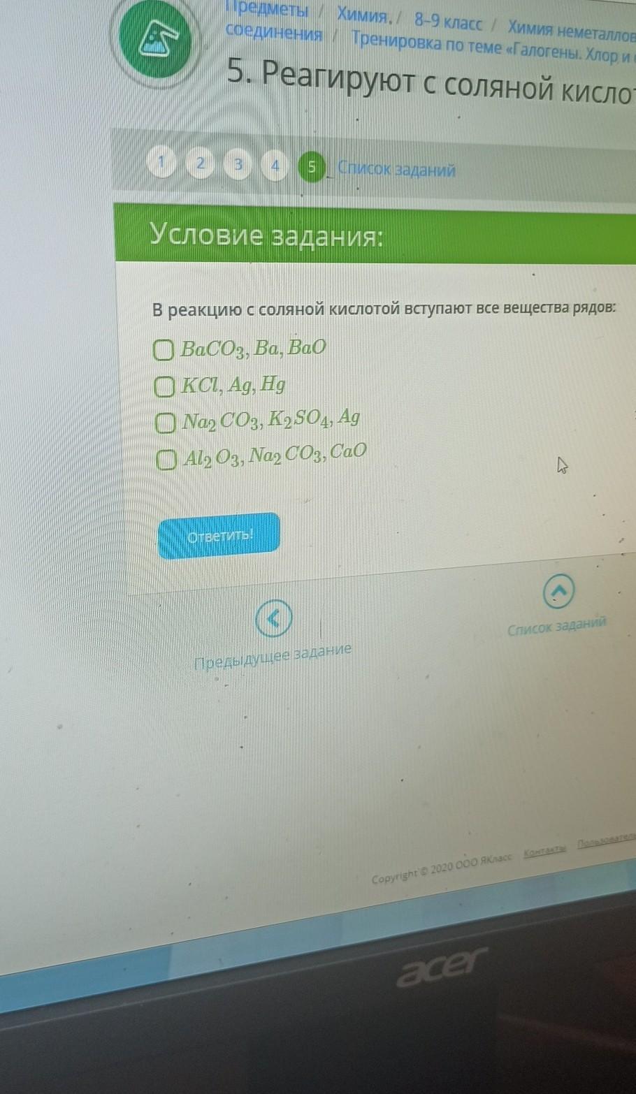 В реакцию с соляной кислотой вступают все вещества рядов: CaO,Cu,CuO CO2,CO,NO BaCO3,Ba,BaO CuO,Al,MgO.