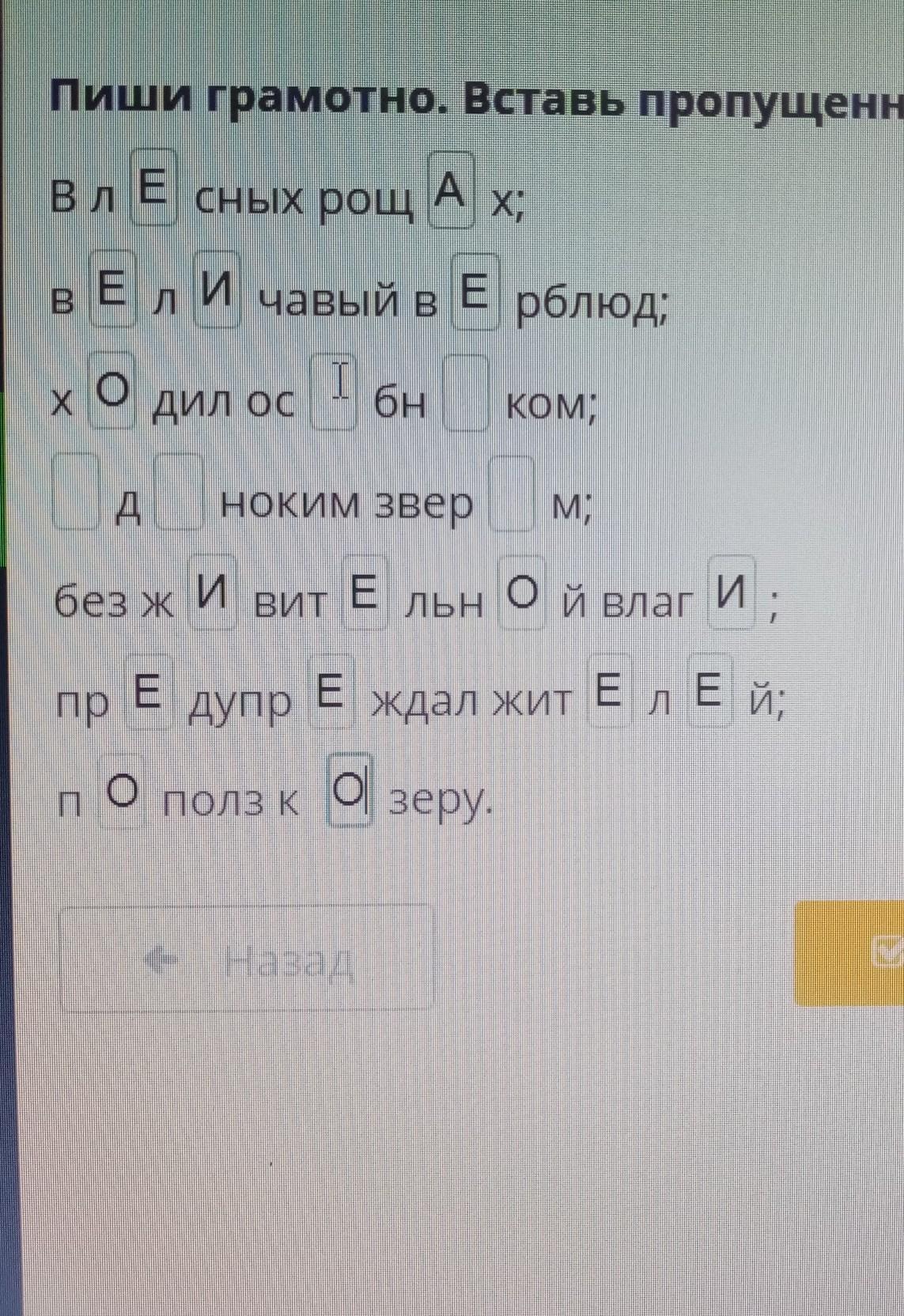 Пиши грамотно. Вставь пропущенные буквы.
