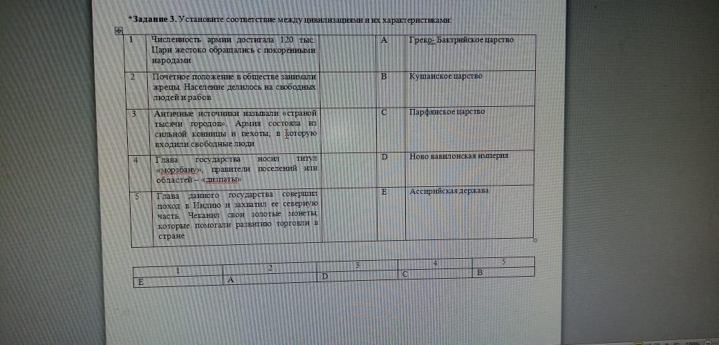 Задание 3.Установите соответствие между цивилизациями и их характеристиками: