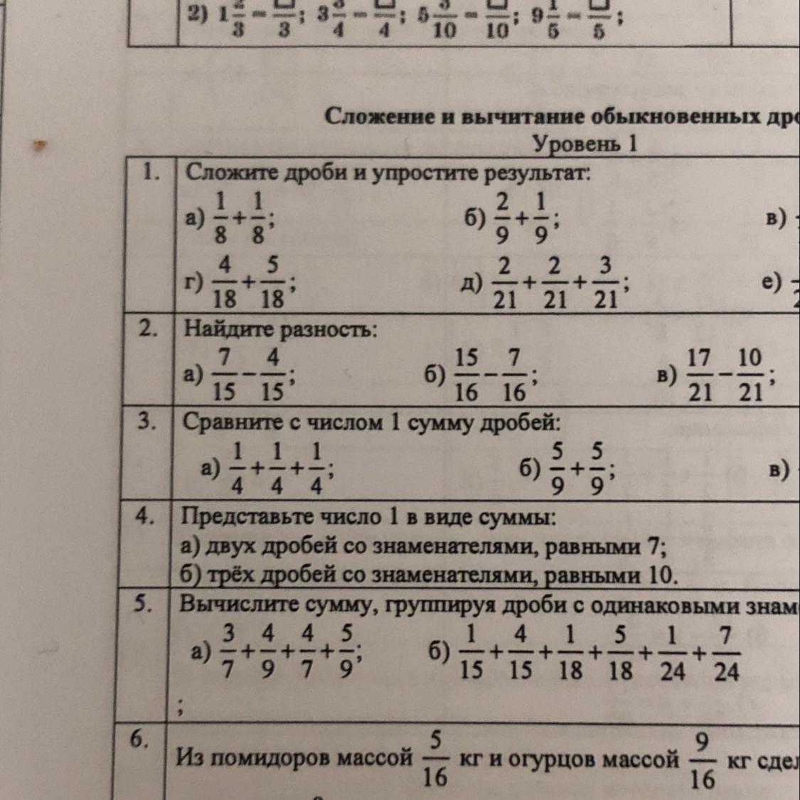 б)1=3/10+1/10+6/10.