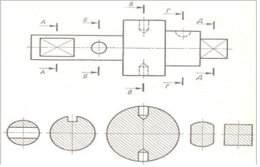 Рассмотрите чертеж и подпишите буквами сечения – где А-А, где Б-Б, В-В, Г-Г,Д-Д