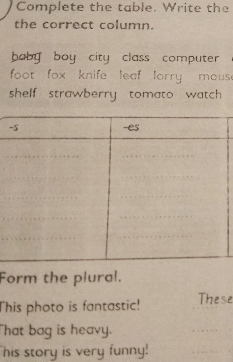 во множественном числе , заполните таблицу.Английский язык