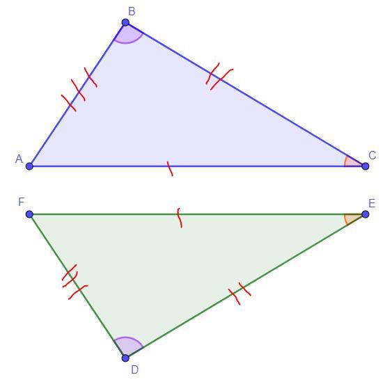 Из равенства треугольников ABC и FDE (угол C равен углу E, а угол B равен углу D) следует, что: