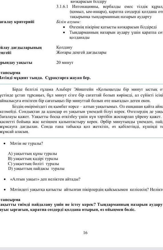 Біздің өміріміздегі ең қымбат нәрсе- алтын уақыт деген мен келісемін. Өйткені бұл шындық, біз әр бір минуты бағаламасақ өкінеміз.