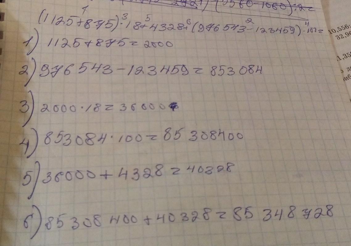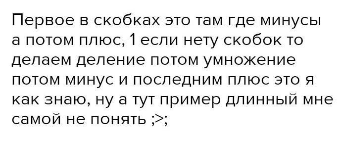 Первое в скобках это там где минусы а потом плюс, 1 если нету скобок то делаем деление потом умножение потом минус и последним плюс это я как знаю, ну а тут пример длинный мне самой не понять ;>;