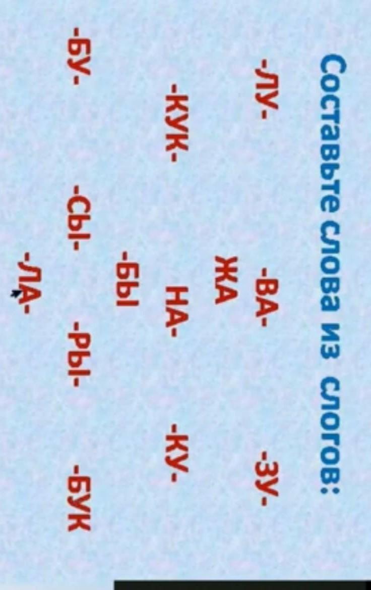 Лужа,валить, зубки,кукла, жаль, надо, купить, буду,было,сыр, рыба, буква,лак
