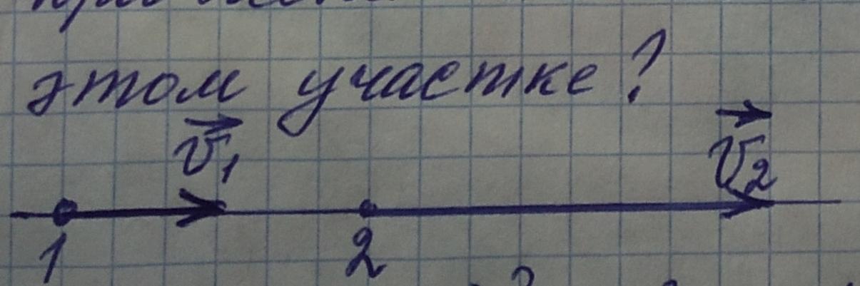 Скорость тела движущегося прямолинейно и равноускоренно изменилось как показано на рисунке. Какое направление имеет вектор ускорения на этом участке?
