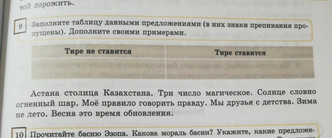 Астана - столица Казахстана. Три - число магическое. Мое правило - говорить правду. Весна - это время обновления. В остальных тире нет.