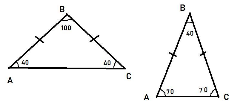 Тогда угол у основания равен (180°-40°)/2=70°.