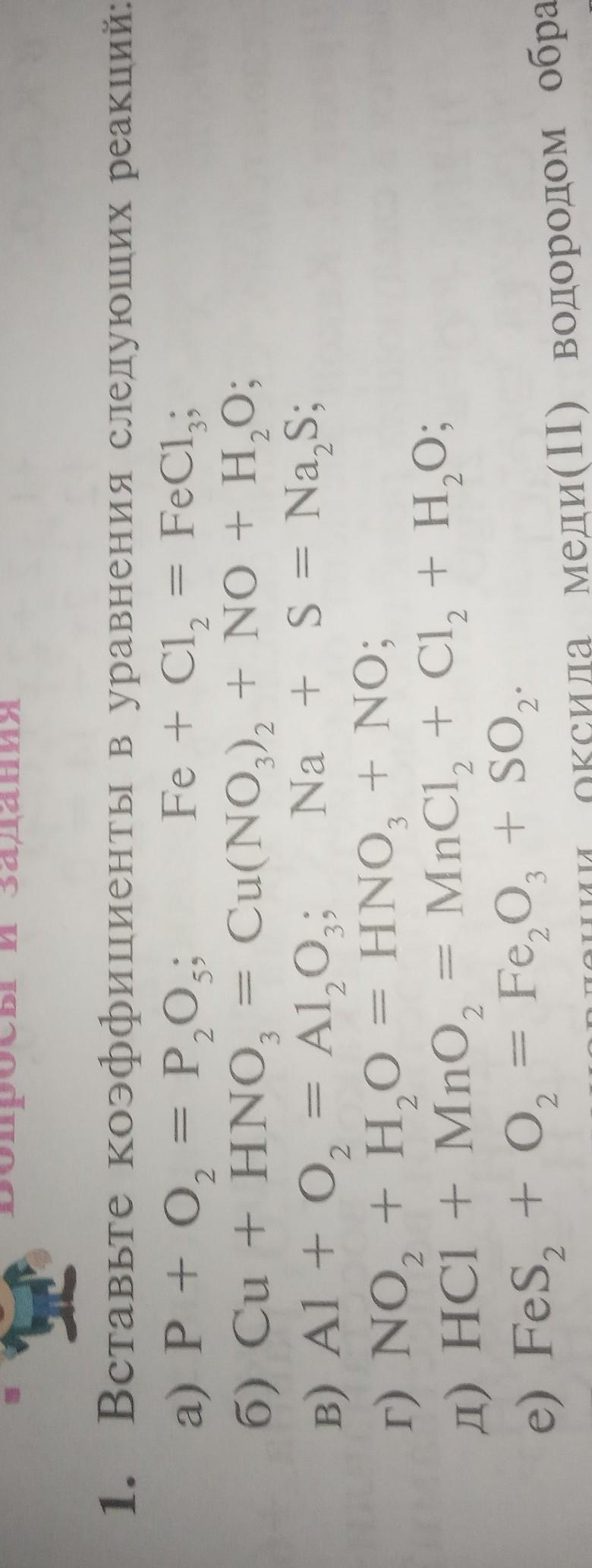 4P+5O2=2P2O5 Fe+3Cl=FeCl3