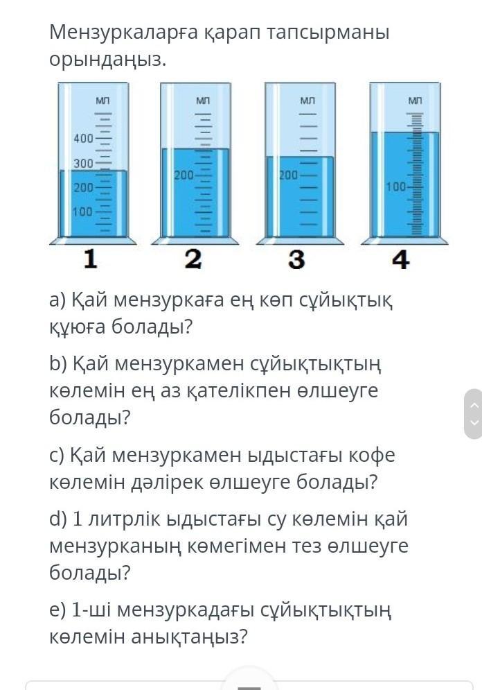с)1-мен себебі ол мензурка 500 мл,онымен 2 рет құю арқылы 1 л су алуға болады