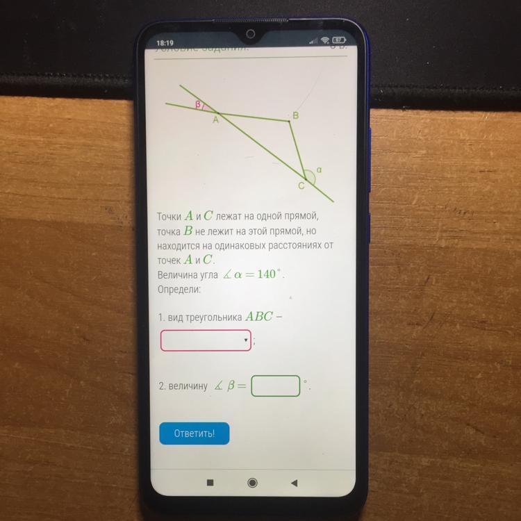 Так как отрезки AB и BC равны по условию задачи - треугольник ABC равносторонний