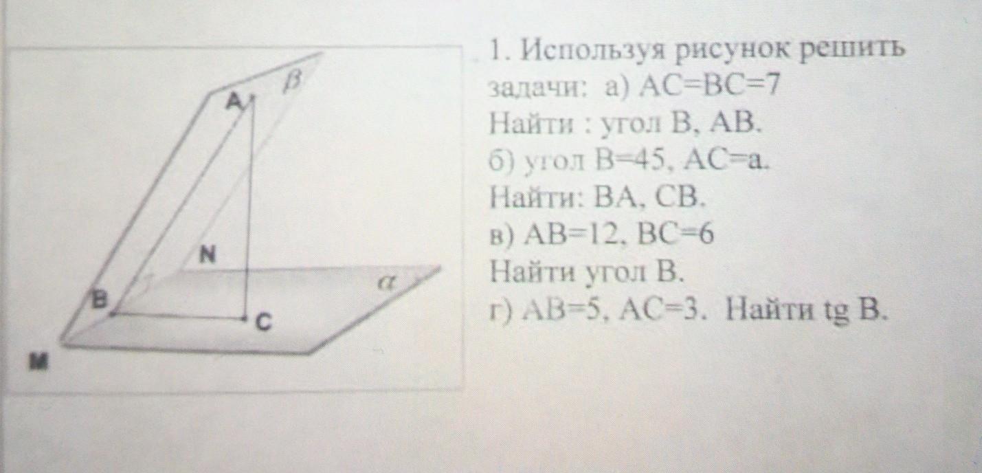 1) так как AC= BC= 7, значит это равнобедренный и прямоугольный треугольник, поэтому угол А= углу В= 45°