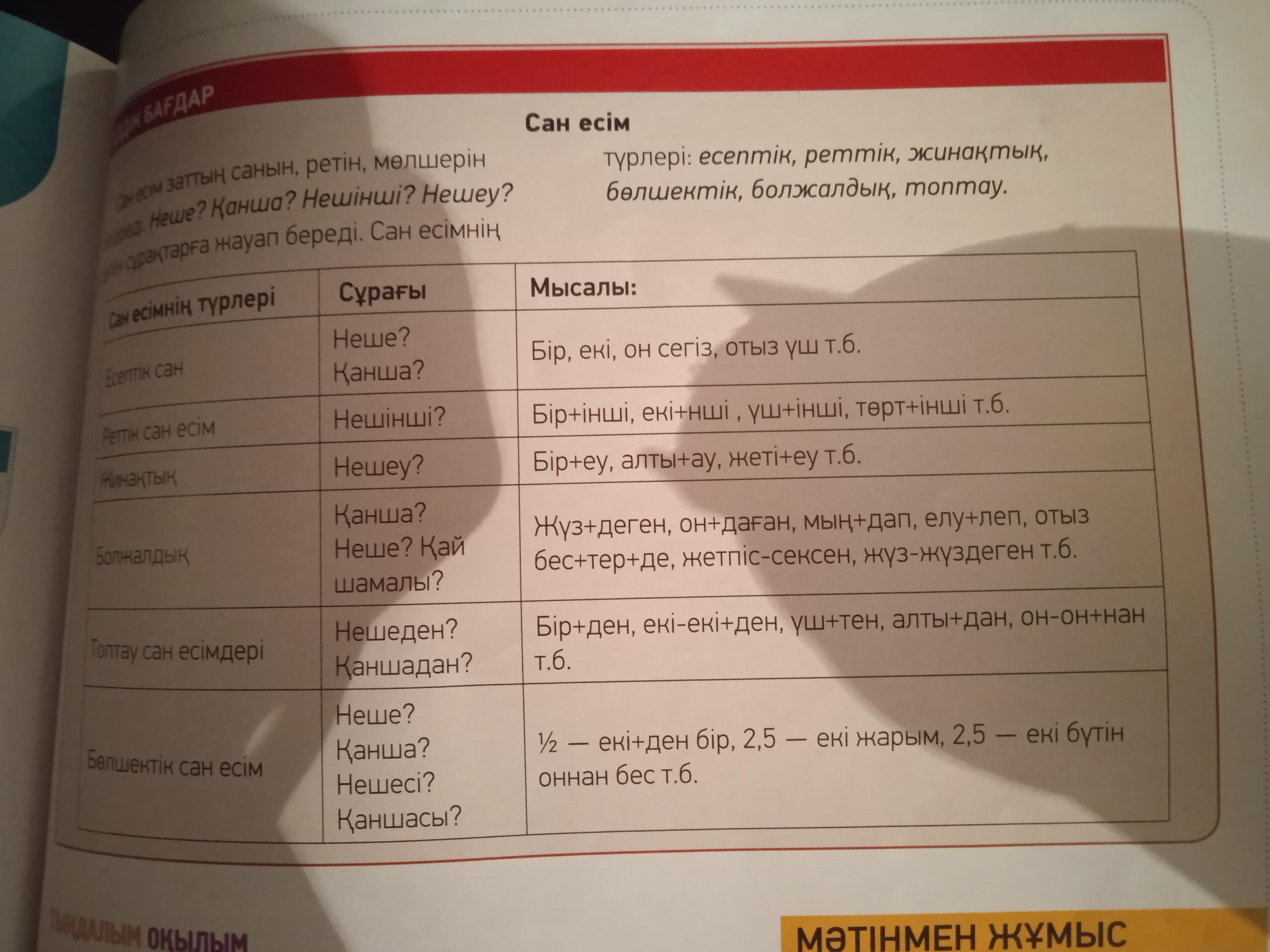 Мен алтыншы болып келдім. Мен бес деген баға алдым. Мен номер он екінші үйде тұрамын. Сен менің бірінші досымсың! Мен жарыста үшінші орын алдым. Біз жеті адам болып келдік.