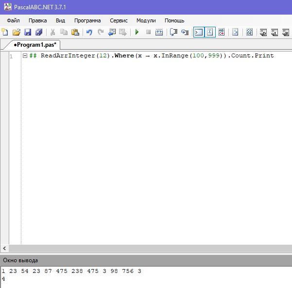 ## ReadArrInteger(12).Where(x → x.InRange(100,999)).Count.Print