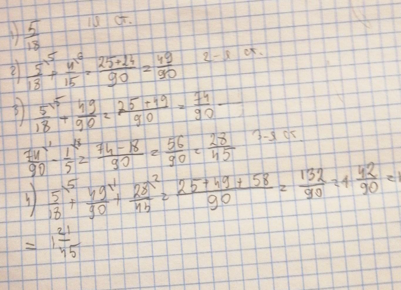 Решите Задачу:Одна сторона треугольника равна 5/18 дм, вторая - на 4/15 дм длинее первой, а третья - на 1/5 дм короче суммы первой и второй сторон. Чему равен периметр треугольника?