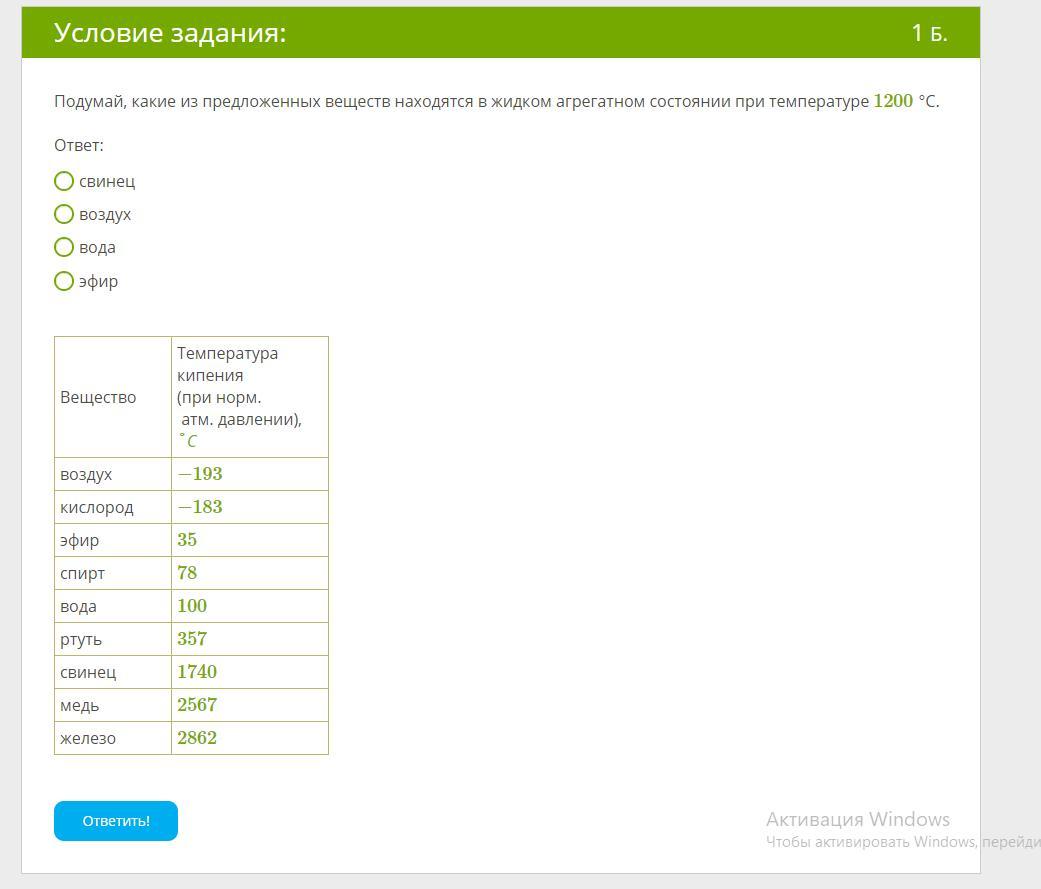 Свинец находятся в жидком агрегатном состоянии при температуре 1200 °С.