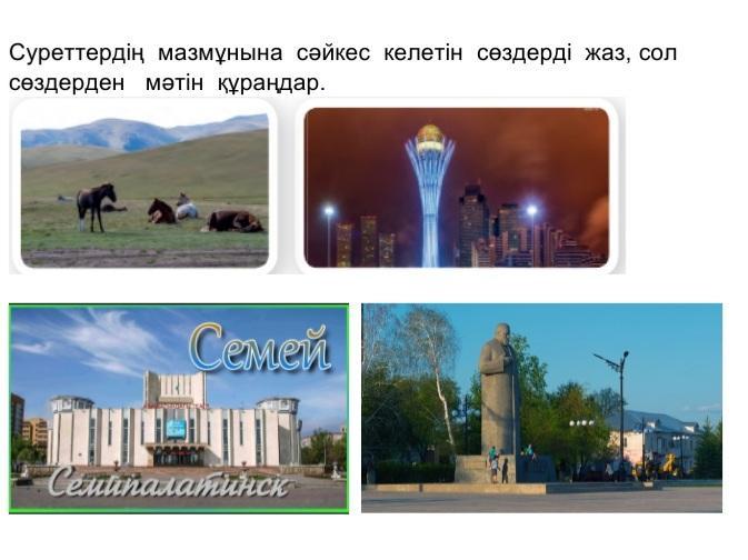 Суреттердің мазмұнына сәйкес келетін сөздерді жаз, сол сөздерден мәтін құраңдар. СРОЧНО ПОМОГИТЕ