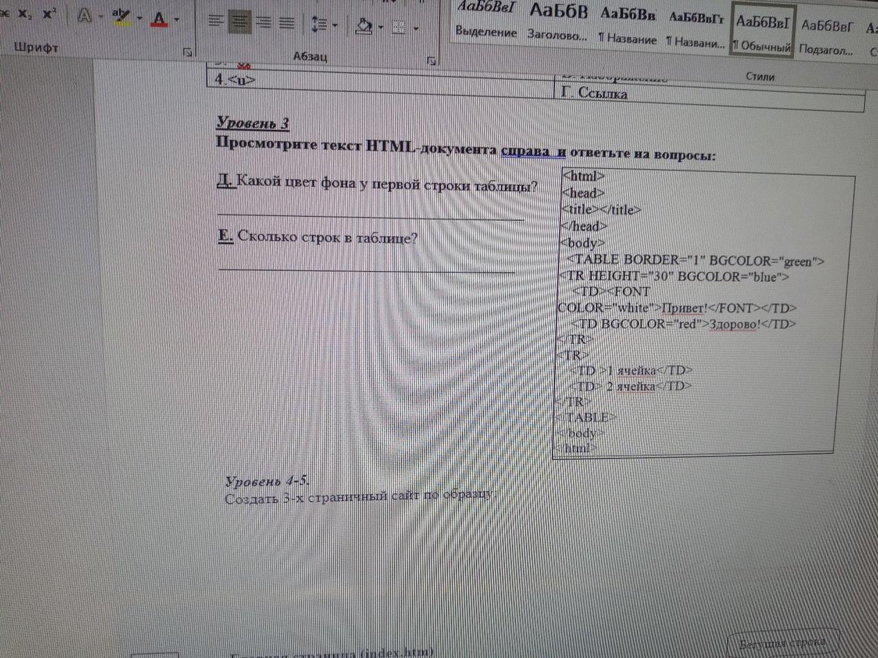 1) blue. У певого тега <tr> параметр bgcolor