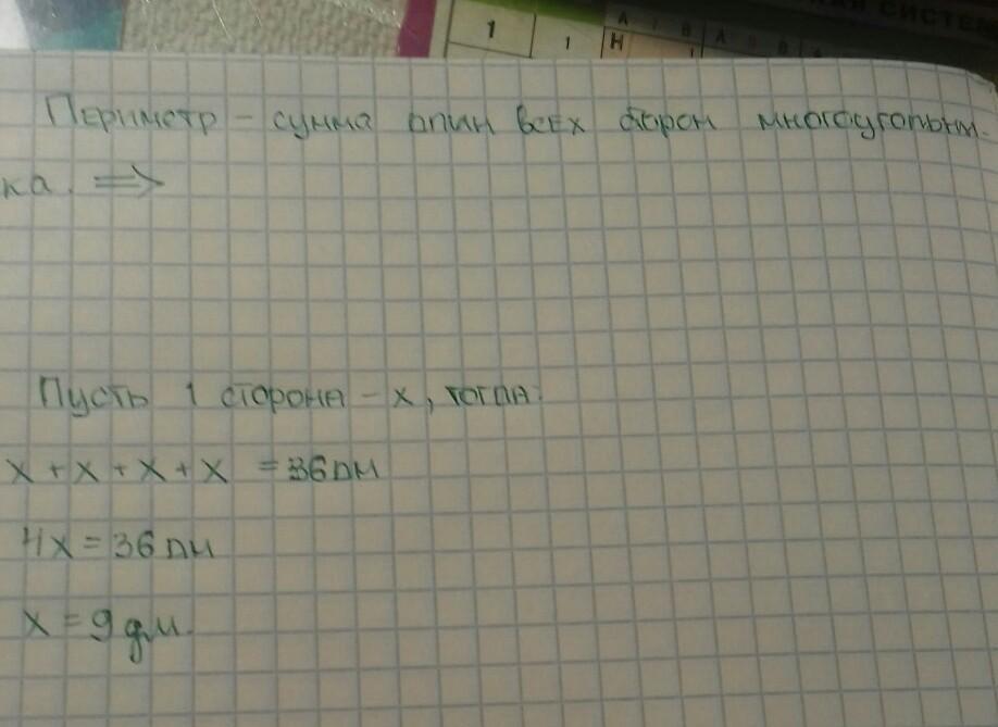 стороны прямоугольника (квадрата) = 9дм