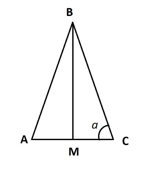 . В равнобедренном треугольник основание равно 8 дм. , а высота, проведенная к основанию -3 дм. Определите: А)синус; В) косинус; С) тангенс острого угла при основании