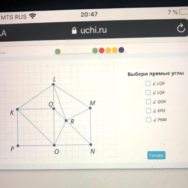 Прямые углы - это углы, градусная мера которых равна 90°. Если не знаешь, сколько это , просто ищи клеточки тетради, по сторонам которых будут проходить линии фигуры и не пересекать их плоскость. Наглядный пример - квадрат и прямоугольник. У них все углы равны 90°
