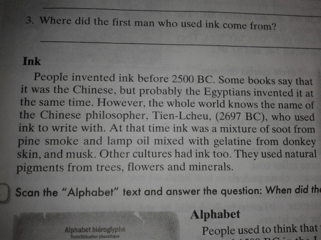 Люди изобрели чернила в 2500 г. до нашей эры. Некоторые книги говорят, что это были китайцы, но, вероятно, египтяне изобрели его в то же время.
