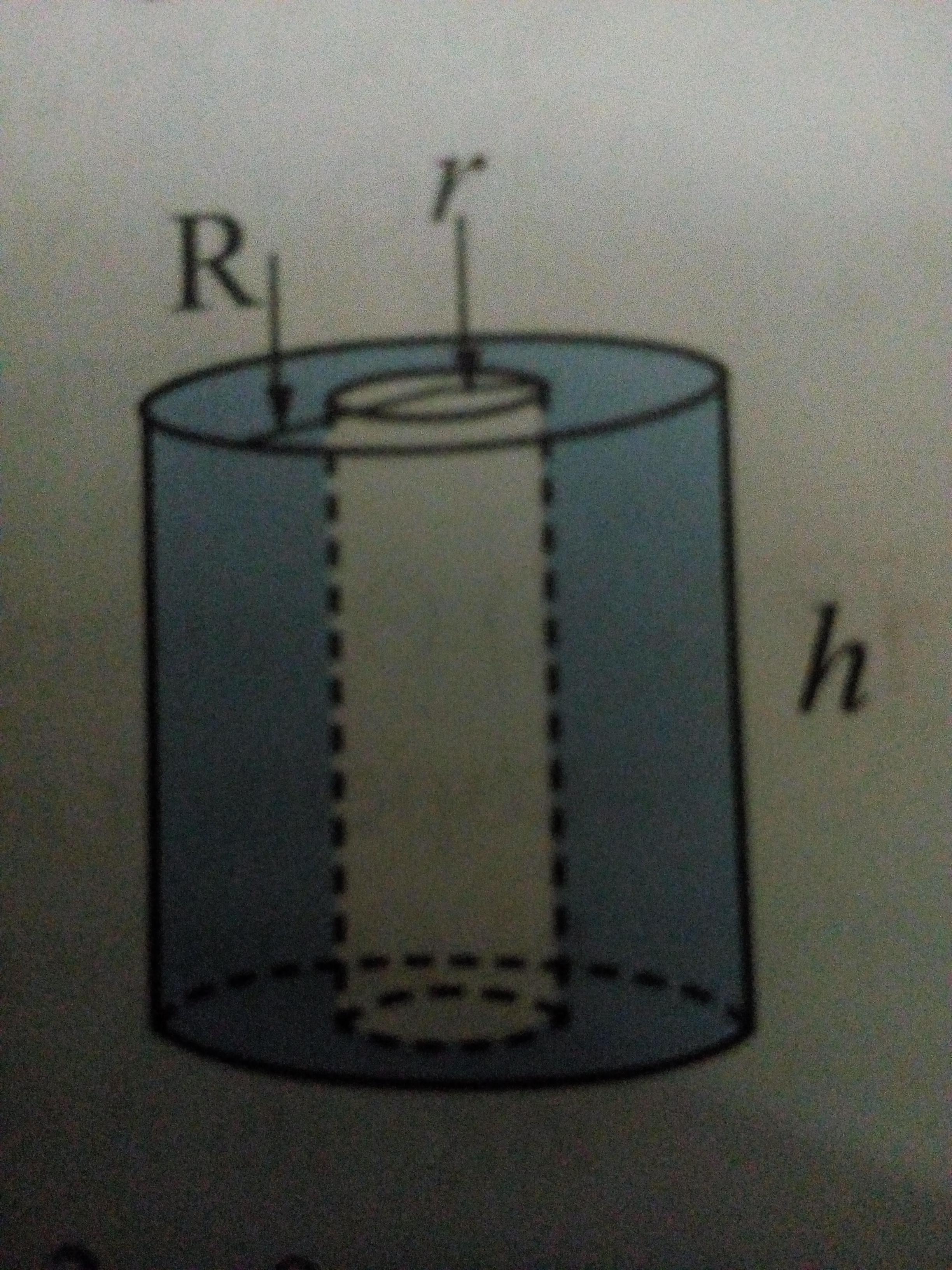 запишите выражение показывающее объём закрашенной части ,если объём цилиндра ,радиус основания которого равен R ,а высота h вычисляется по формуле V=п·R^2·h