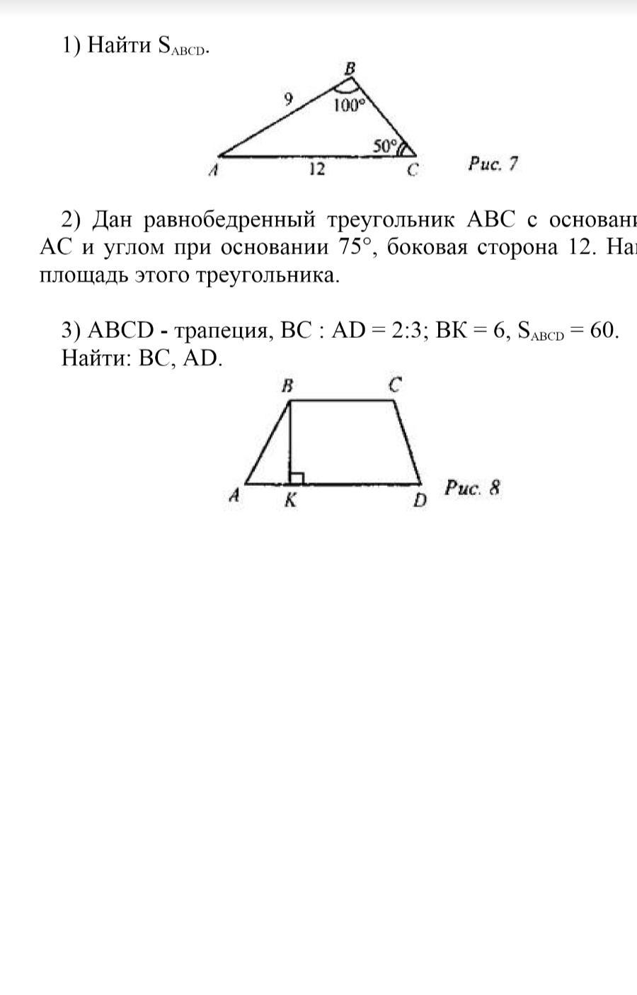 S=1/2 * AB * AC * sin30 = 1/2 * 9 * 12 * 1/2 = 27 ед²