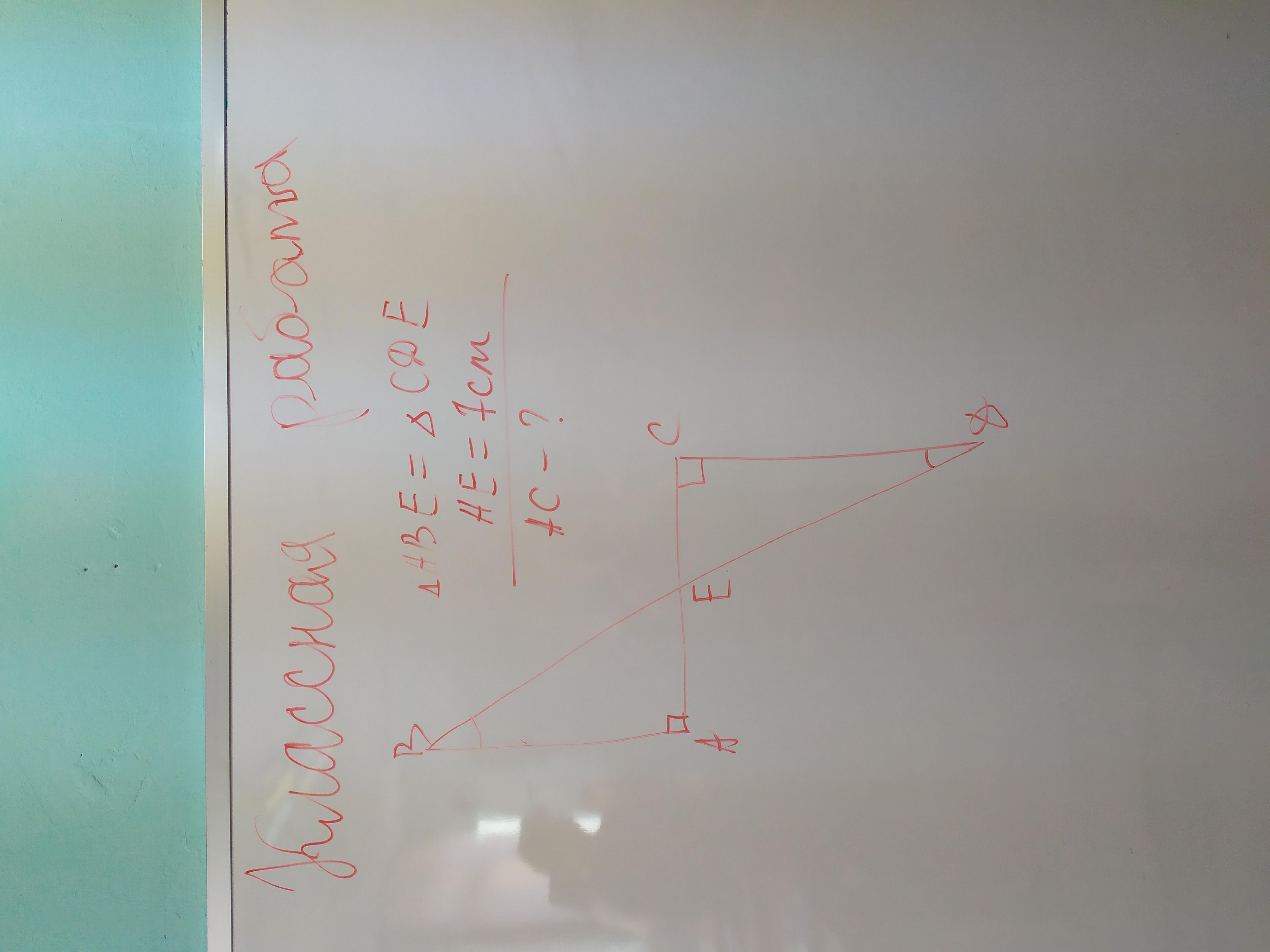т. к. треугольники АВЕ и СДЕ равны, АЕ=ЕС=7 см. следовательно, АС=АЕ+ЕС; 7+7=14 см