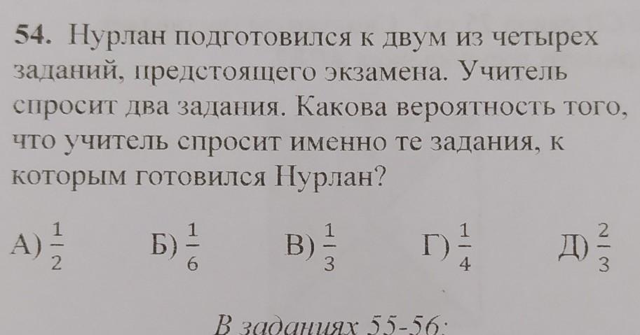 Нурлан подготовился к двум заданиям из четырех. То есть половина. А 1÷2=0,5. Другие варианты не подходят.