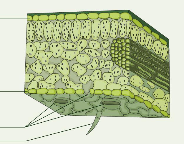 2)состоит из прозрачной покровной ткани, благодаря чему свет проникает в мякоть листа