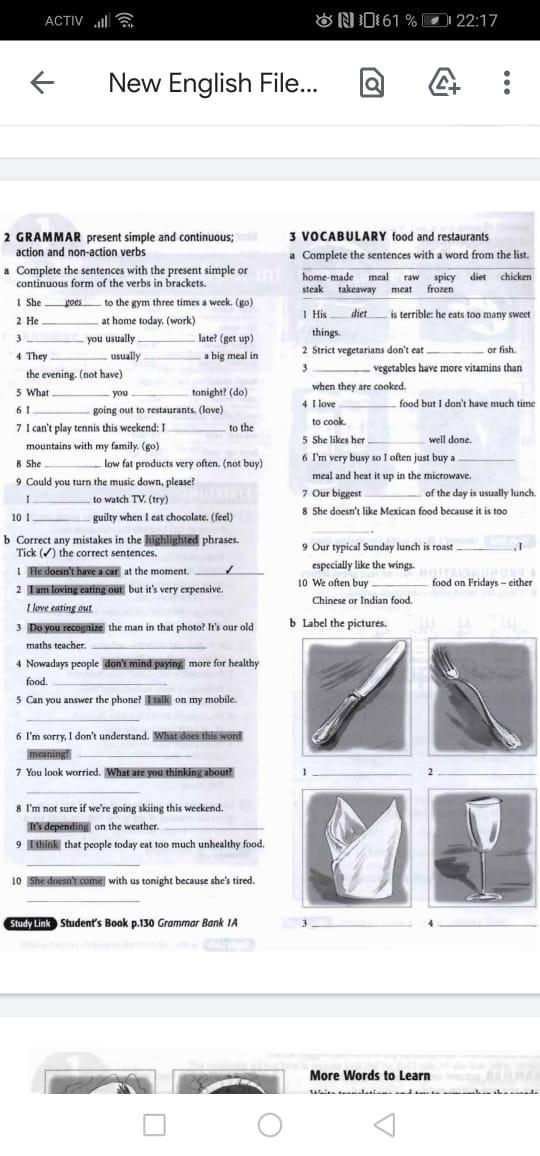 Дополните предложения настоящей простой или непрерывной формой глаголов в скобках.