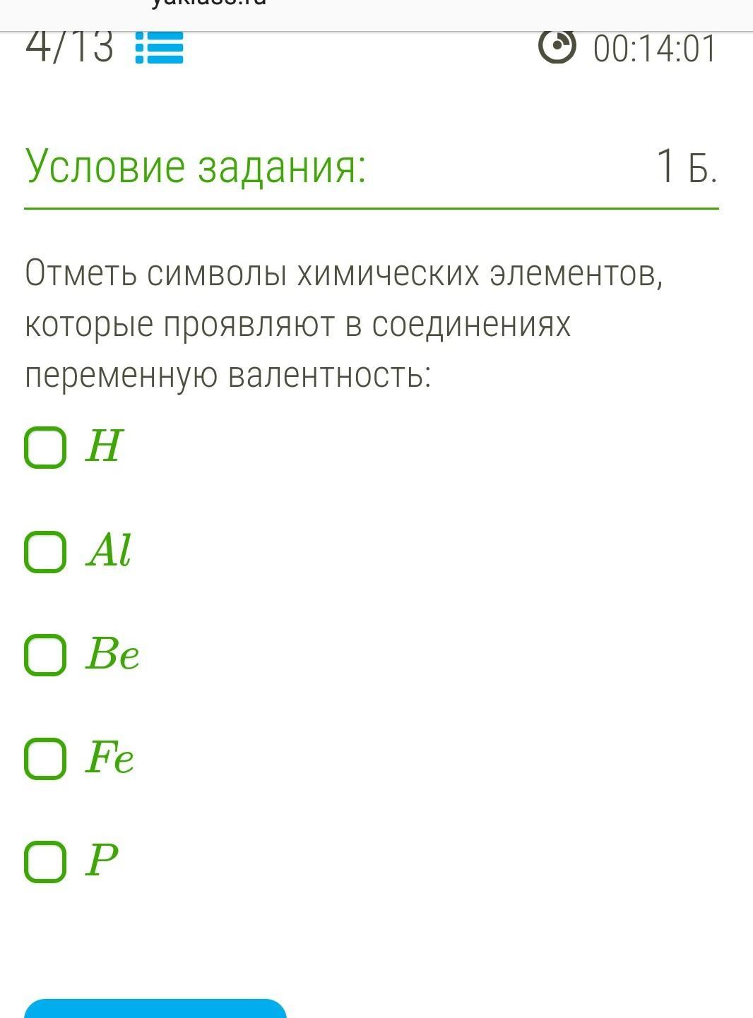Отметь символы химических элементов, которые проявляют в соединениях переменную валентность: