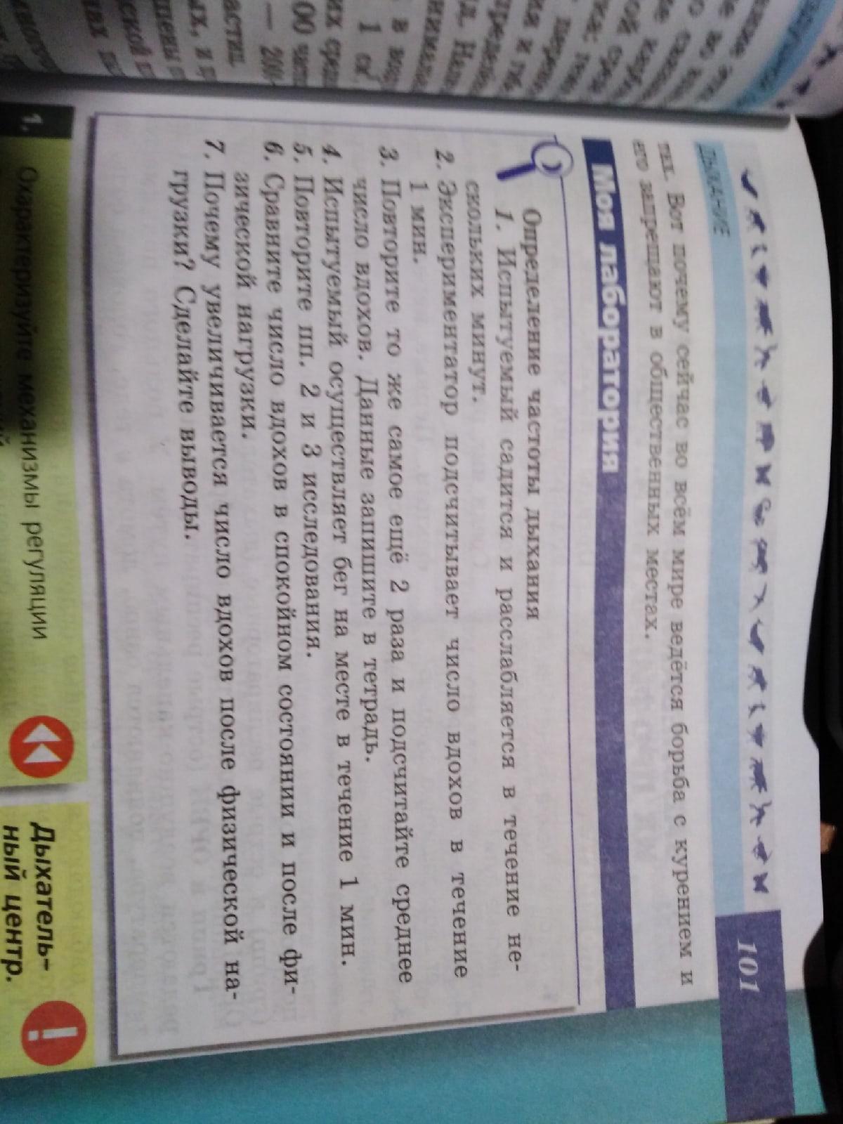 Вдохов - 8—12 вдохов в минуту (в покое). У человека нетренированного частота дыхания от 16 до 18 вдохов в минуту.На 20 раз больше...,после 20 приседаний 69 вдохов в минуту. Вывод : после физической нагрузки, дыхание участилось, сердцебиение стало превышать норму. Усиливается кровообращения кров не успевает насыщаться кислородом, поэтому мы дышим чаще после физ нагрузки. Если одышка, сопровождаемая учащением дыхания, проходит в течение первых 3 — 5 мин (максимум 10) после прекращения нагрузки, то такое учащение можно считать удовлетворительным. Если же учащение дыхания сохраняется более 10 мин, то, безусловно, эта реакция отрицательная. Она свидетельствует о том, что нагрузка, применяемая в данном случае, не соответствует норме