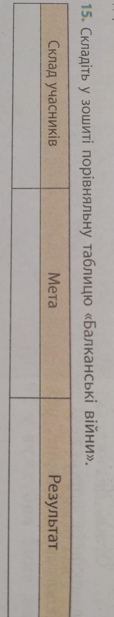 у першій балканській війні склад учасників османська імперія і проти неї Чорногорія Греція Сербія Румунія і Болгарія вони об'єдналися в Балканській союз і іх ціль була визволення національних територій і населявших іх народів ві османського покровительства і результята першої балканської війни балканський союз забрав територій Османської імперії на Балканах а у другійй Балканаський війні Османська імперія підговорила усі страни балканського союзу проти Болгарії бо Болгарія забрала найбільші територій такщо у другій Балканаський війні в балканському союзі була усі страни як у першій але Османська імперія увійшла до балканського союзу і усі страни балканського союза воювали проти Болгарії і у результаті балканський союз забрав території у Болгарії що в наступному Болгарії вступить у 1 світову війну на стороні центральних держав Германії і Австро-Угорщини і Османської імперії і Болгарії Ось і все