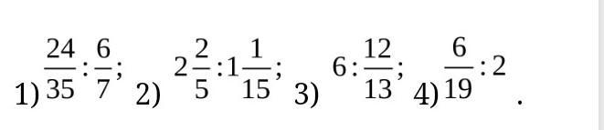 1) переварачиваем вторую дробь, меняем знак на умножение и получаем: 24/35*7/6, дальше идёт сокращение, и получается 4/5.